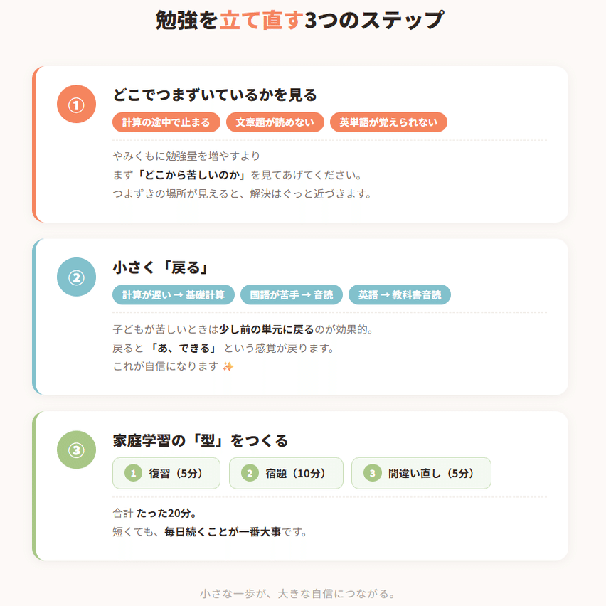 勉強が苦しくなる原因は、だいたいこの3つです。